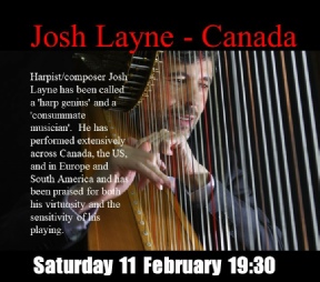 Harpist/composer Josh Layne has been called a 'harp genius' and a 'consummate musician'. He has performed extensively across Canada, the US, and in Europe and South America and has been praised for both his virtuosity and the sensitivity of his playing.